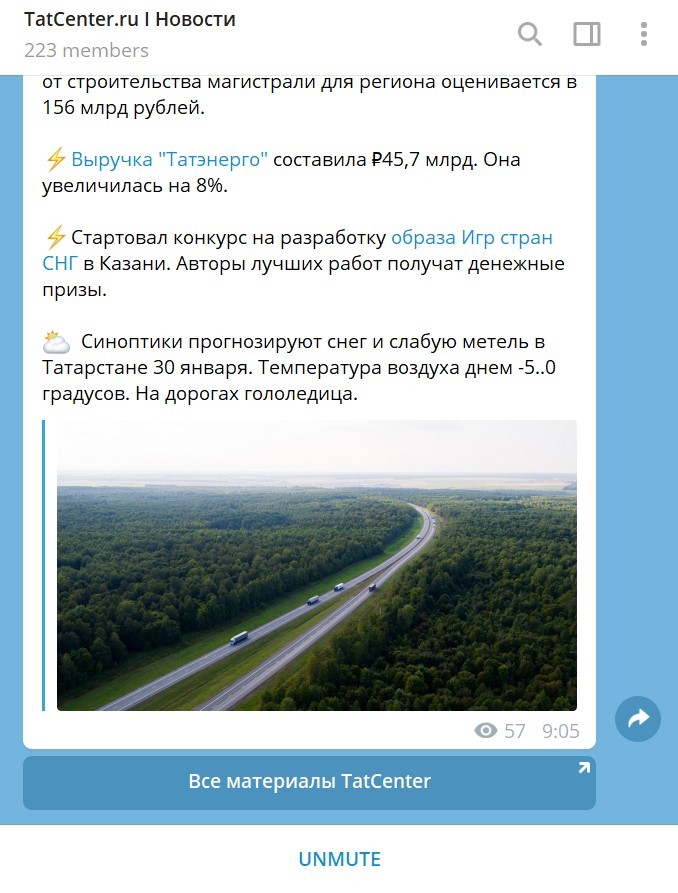 Созданный в феврале 2018 года, по аналогии с большинством остальных татарстанских СМИ, использует канал для привлечения трафика на сайт. Вот уже почти два года он публикует утренние и вечерние подборки с основными новостями и днями рождения чиновников. Интересный ход, ведь дата рождения и биография власть имущих, опубликованная на сайте TatCenter, зачастую является основной причиной для посещения издания.