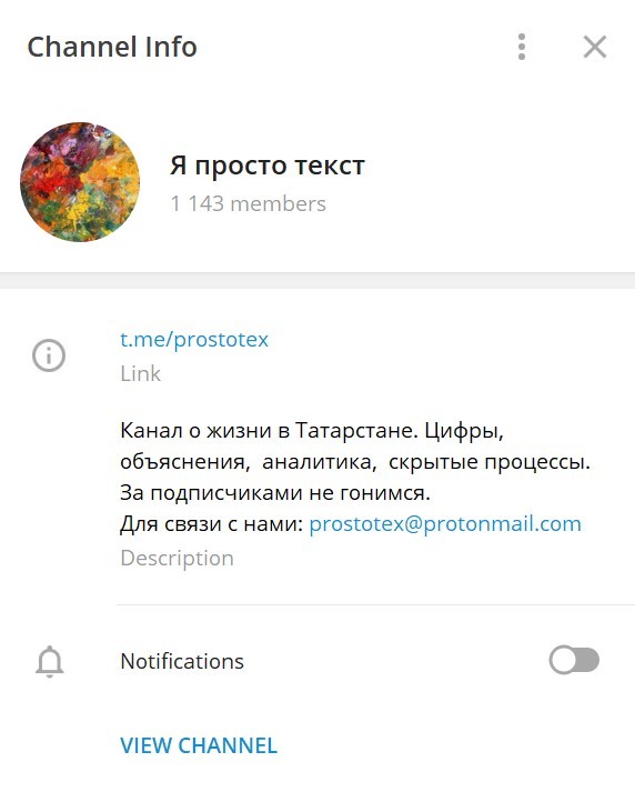 Появившийся в сентябре 2018 года канал, несмотря на несколько месяцев молчания, не теряет подписчиков. За время своего существования «Я просто текст» комментировал новости из федерального центра, сообщения местных СМИ и Telegram-каналов, зачастую беря на себя роль арбитра в разрешении спора, но все же демонстрируя выпады в сторону связанного с мэрией Казани «Бизнес Online».