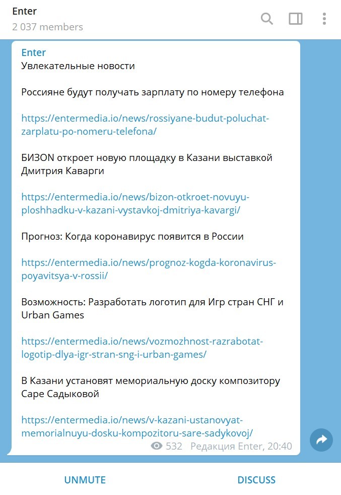 С горем пополам набрав постоянный пул подписчиков, канал сдался и был переименован: то ли его в последнюю очередь забрали у эффективного медиаменеджера, то ли просто передали другому сотруднику местной «фабрики троллей», но новый автор по крайней мере умел печатать на клавиатуре, а не бесконечно жал на значок репоста. Первое, что сделал обновленный ресурс, - создал канал-агрегатор новостей татарстанских СМИ и начал давать подробную еженедельную аналитику Telegram-сферы.