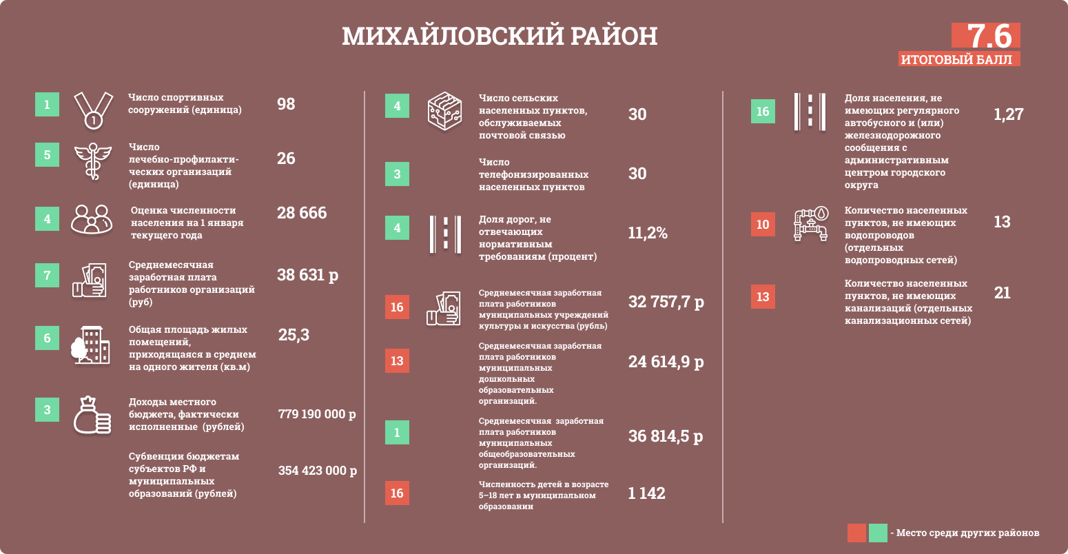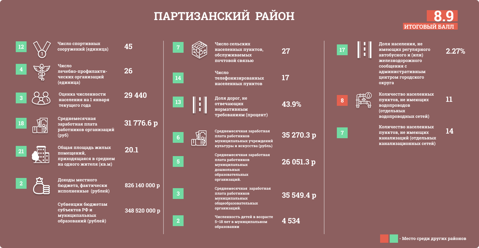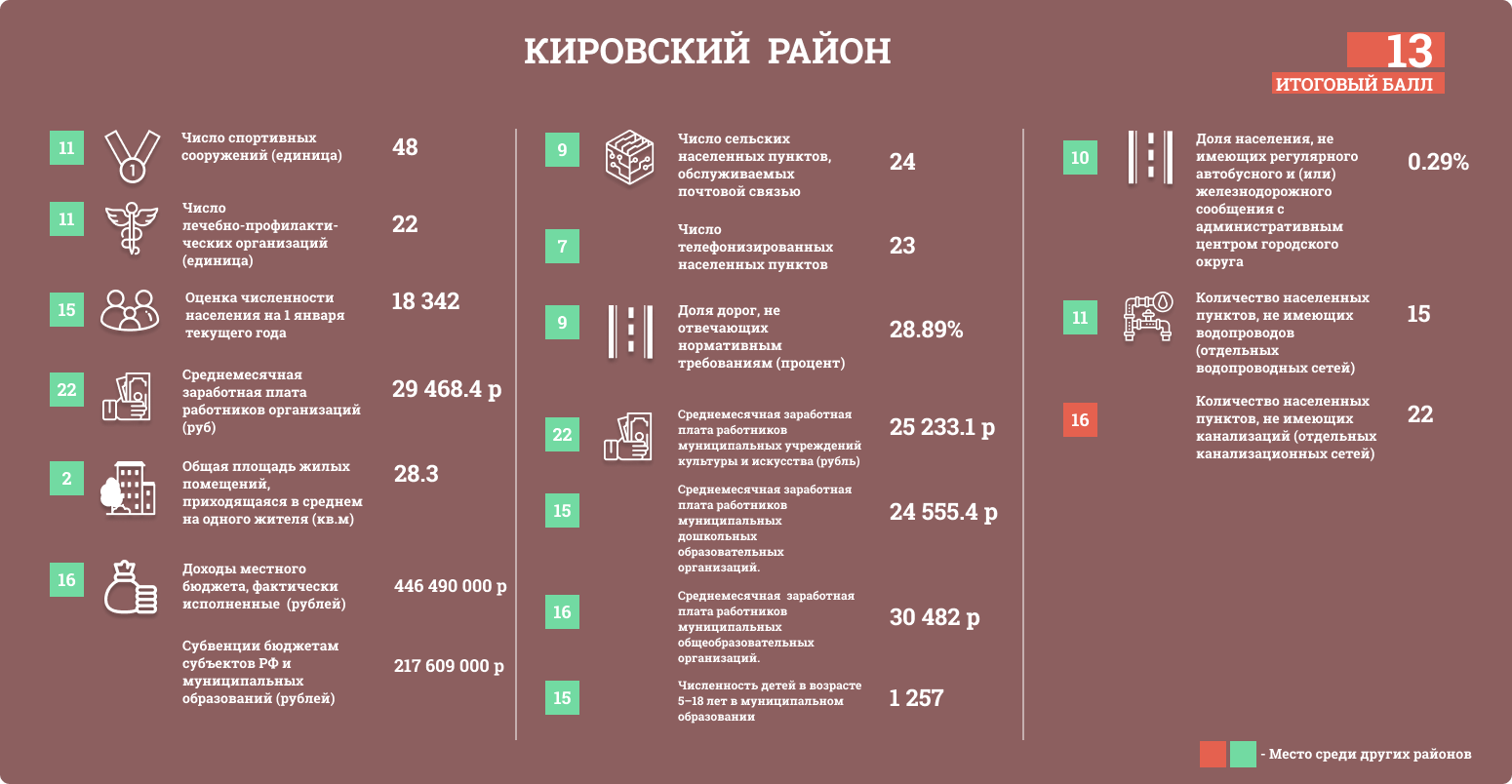 Районам присваивались баллы в зависимости от положения в таблице. Чем больше значение, тем выше балл.