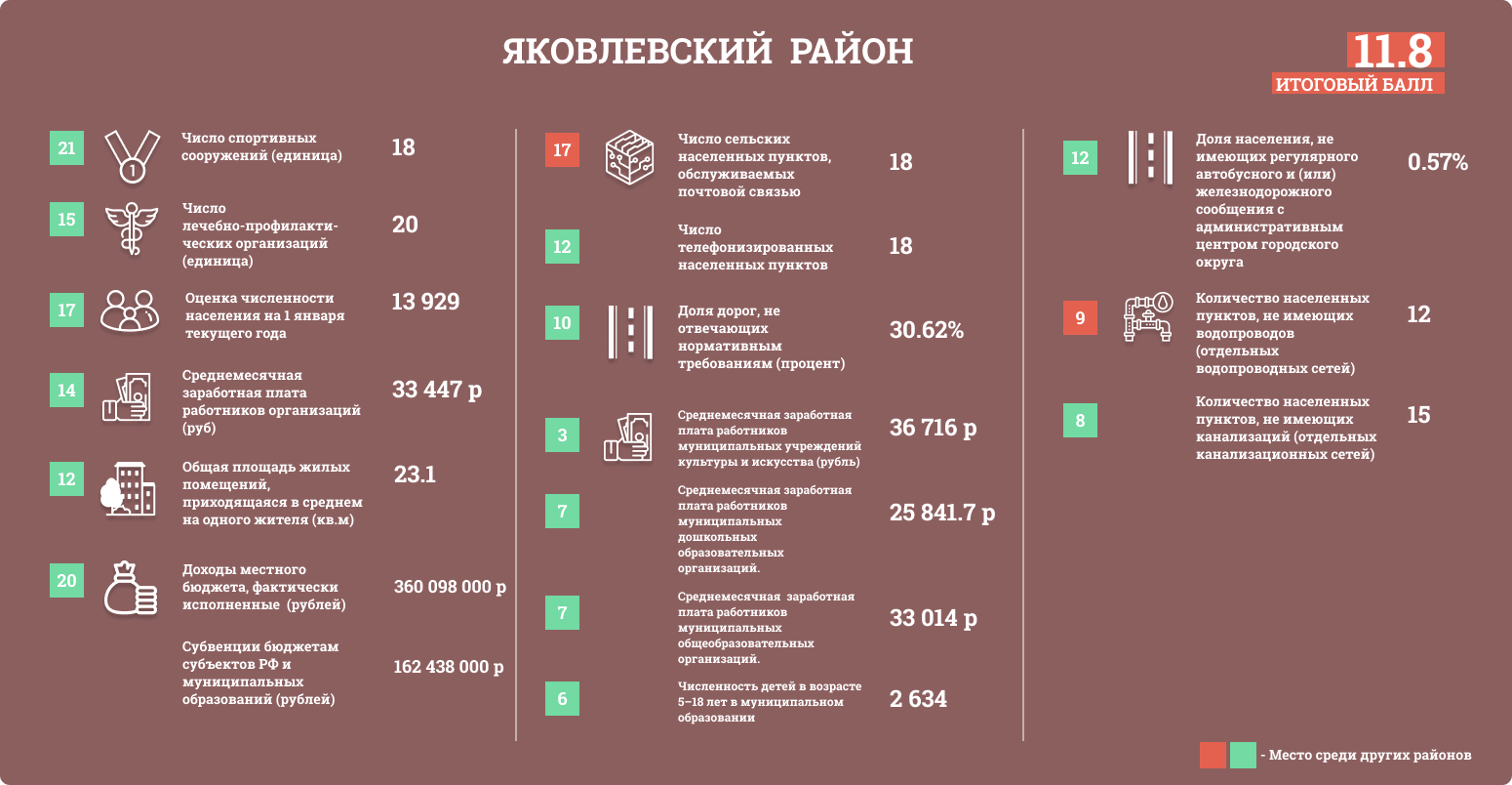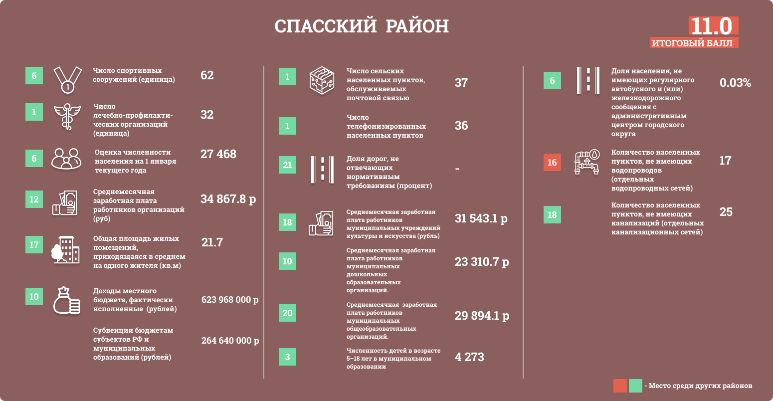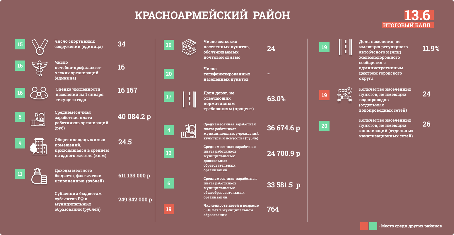 Районам присваивались баллы в зависимости от положения в таблице. Чем больше значение, тем выше балл.