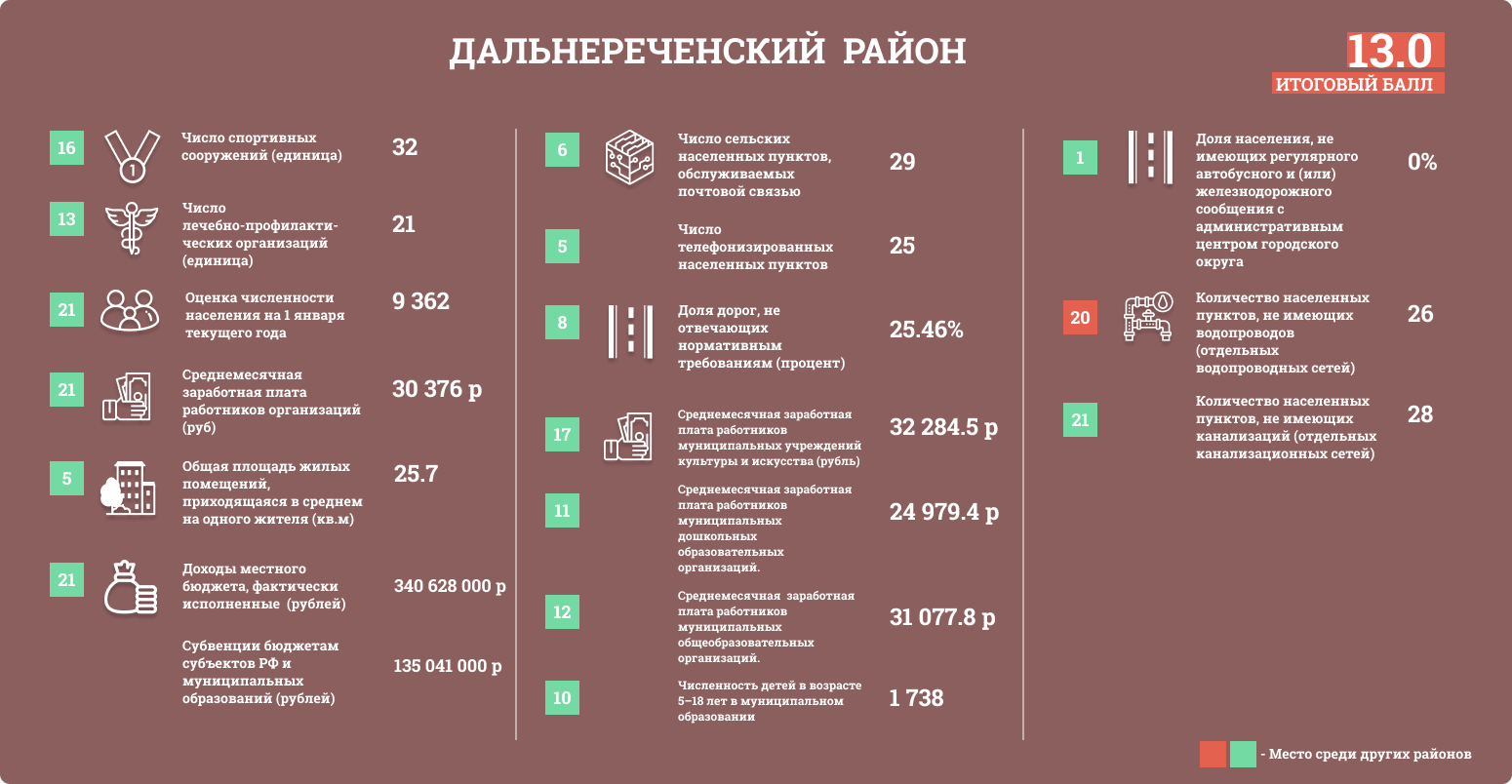 22 района Приморского края оценивались по ключевым показателям: