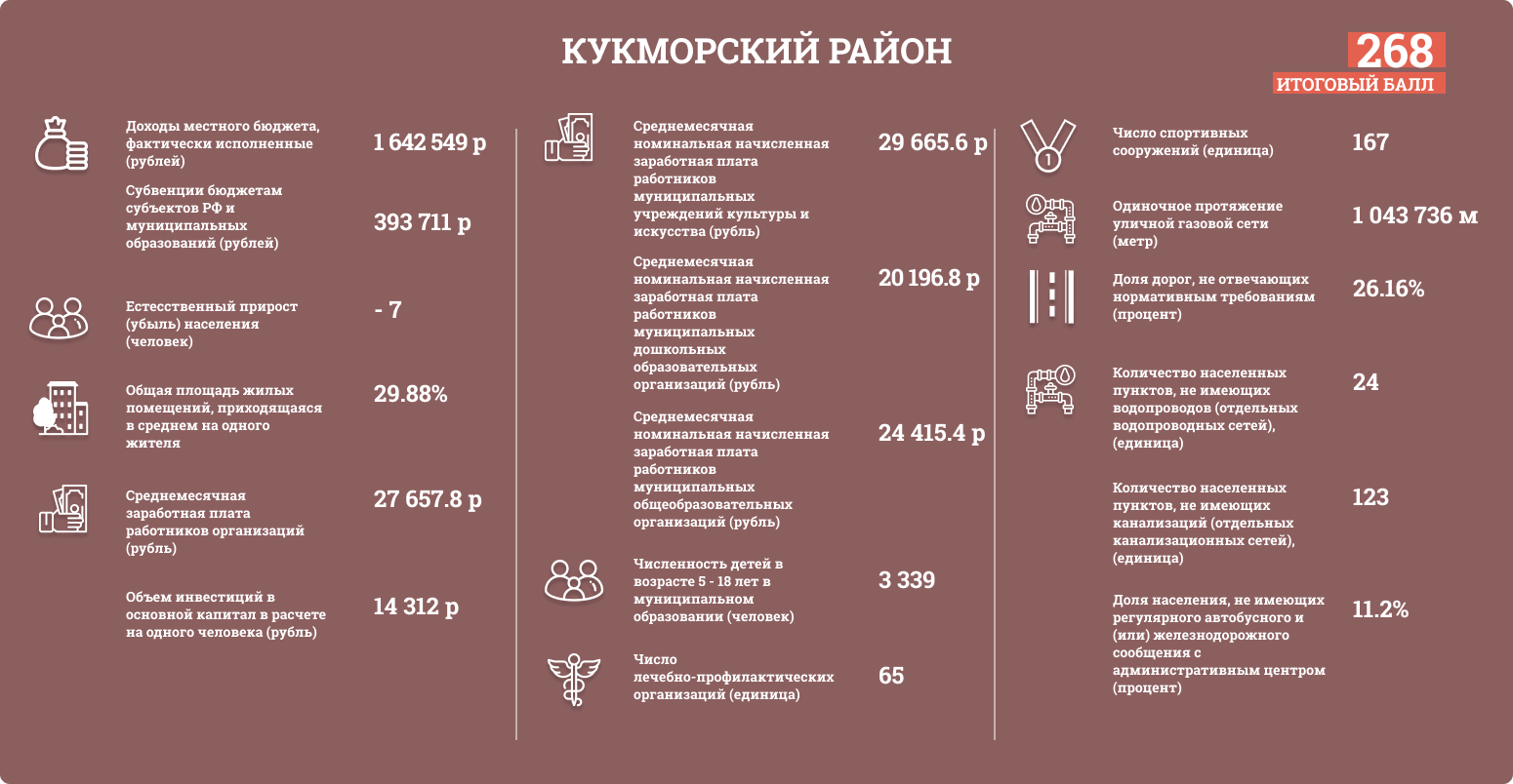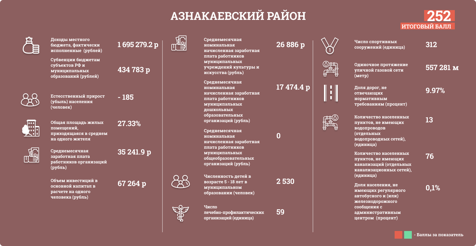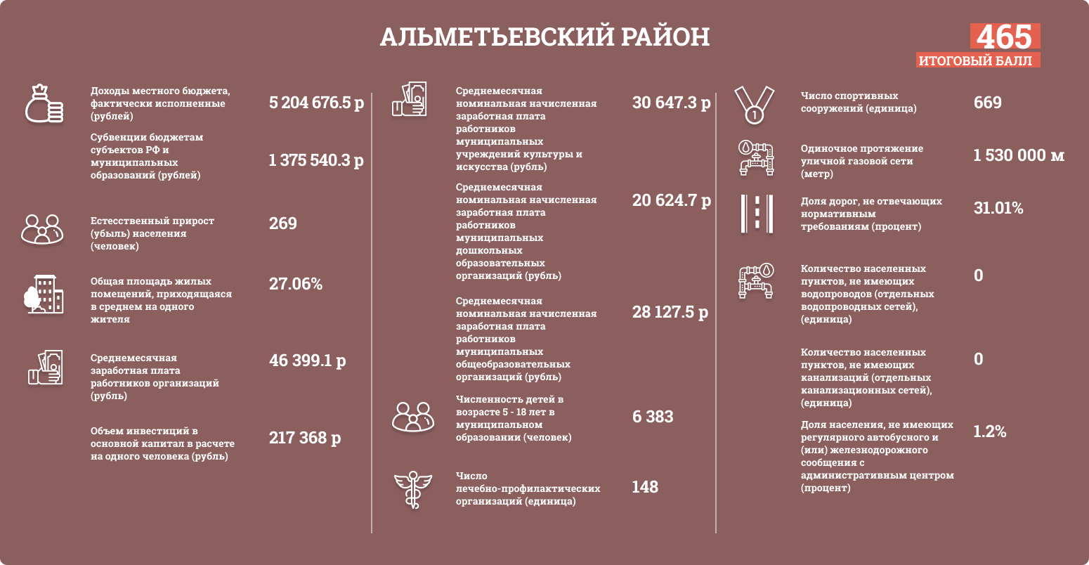 Районы Татарстана оценивались по таким показателям, как: