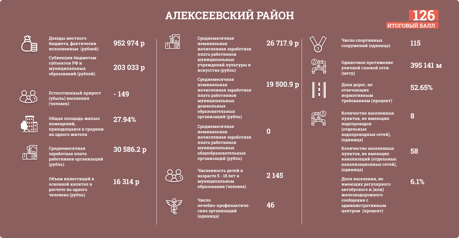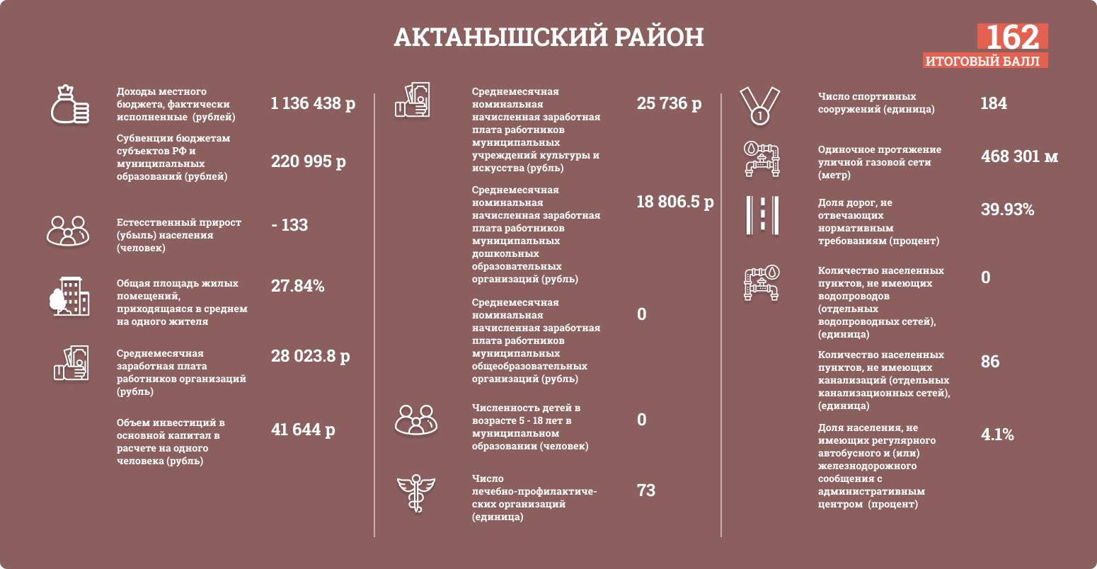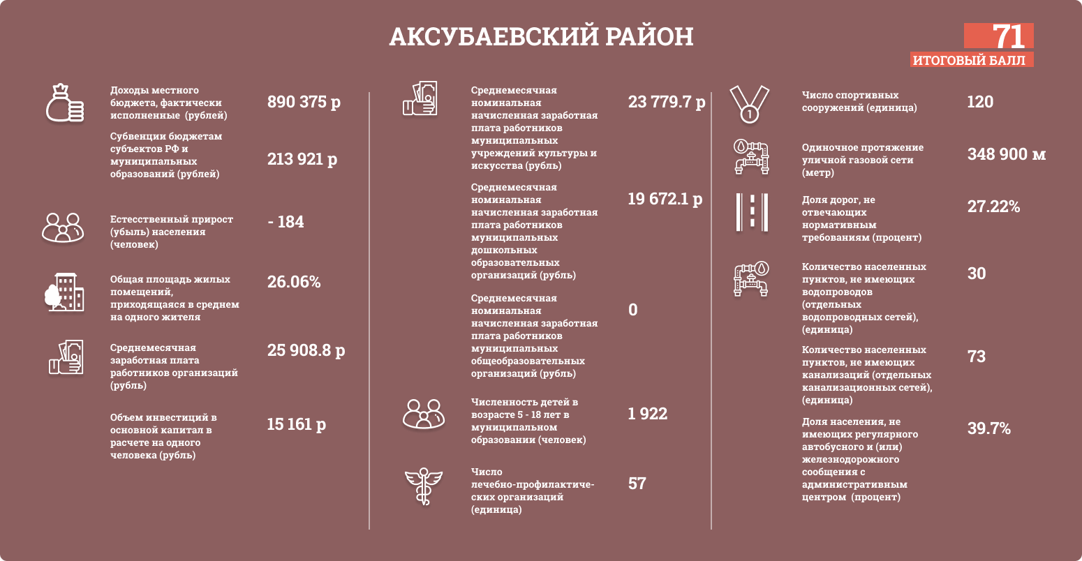 Районы Татарстана оценивались по таким показателям, как: